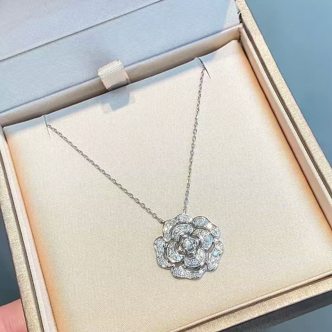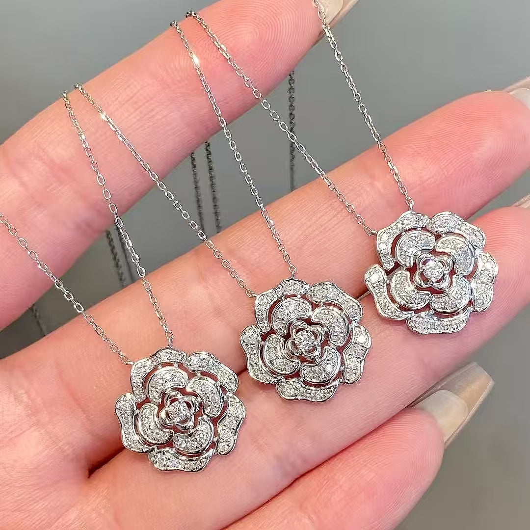• Enchanting Rose Design: The pendant takes the shape of a fully bloomed rose, with a central round-cut lab-grown diamond as the “core,” surrounded by layers of pavé-set lab-grown diamonds that mimic delicate petals. The three-dimensional silhouette adds depth and lifelike charm, making the rose appear to bloom softly at your collarbone.