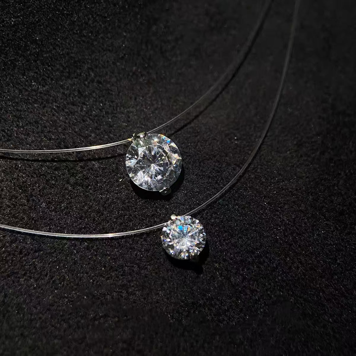 Invisible Yet Iconic Chain: The necklace is strung on a ransparent wire that seems to disappear against your skin, creating the illusion that the diamond floats gracefully at your collarbone. This design choice emphasizes the diamond’s beauty, making it the undisputed focal point.